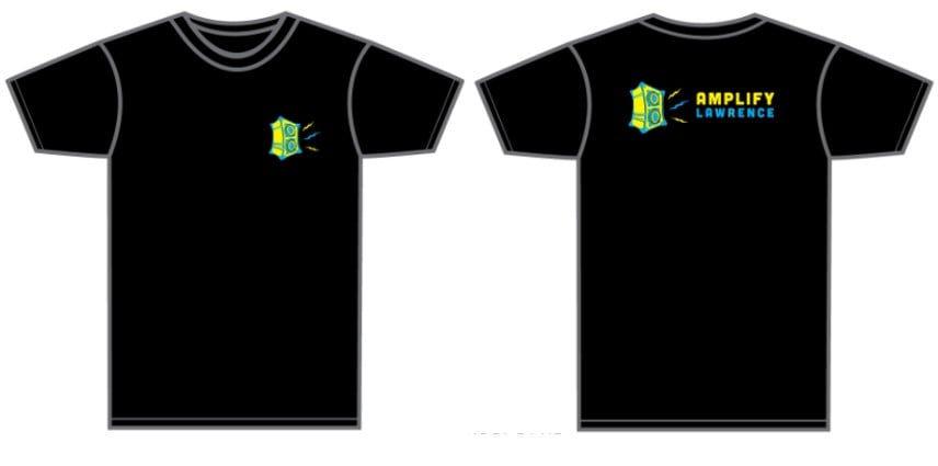 BLUE & YELLOW PRINT ON BLACK T-SHIRTS